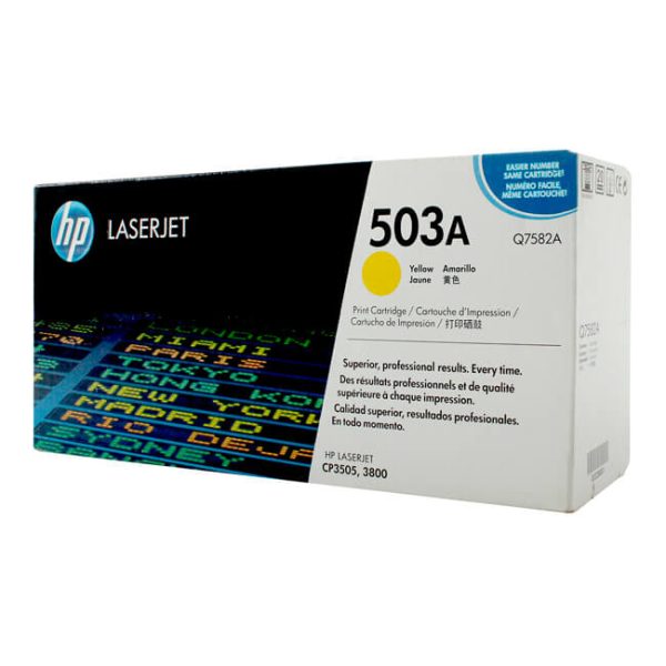 Marca : HP Código : Q7582A Color : Yellow Rendimiento : 6,000Pag. Garantía : 01 año Fabricante Compatibilidad : HP LaserJet: 3800 / 3800dn / 3800dtn / 3800n / CP3505 / CP3505dn / CP3505n / CP3505x -